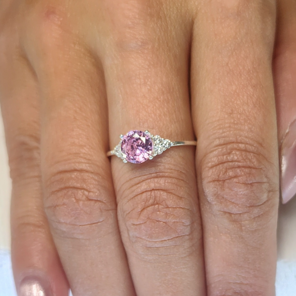 Anillo Plata con Diamante Circulo Rosado